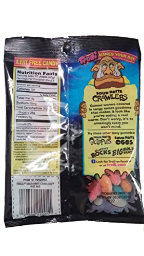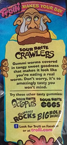 - Binding : Misc.- Brand : Trolli- EAN : 0758270012956- PackageQuantity : 1- ProductGroup : Grocery- ProductTypeName : GROCERY- Size : 4 oz- Title : TROLLI SOUR BRITE CRAWLERS GUMMY WORMS CANDY 4 OZ BAG- UPC : 758270012956