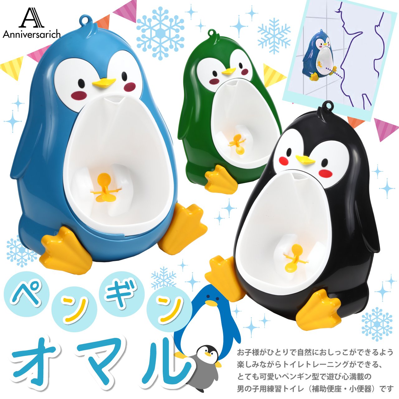 Anniversarich Potty toilet training boys penguin removable