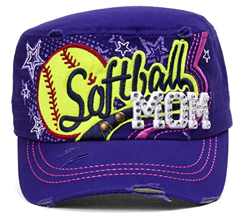 TopHeadwear Softball Mom Distressed Adjustable Cadet Cap - Purple