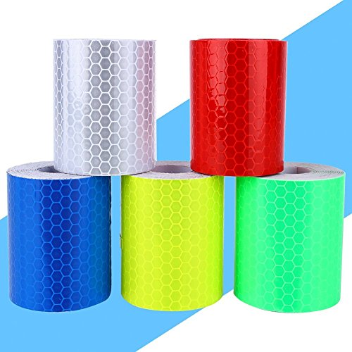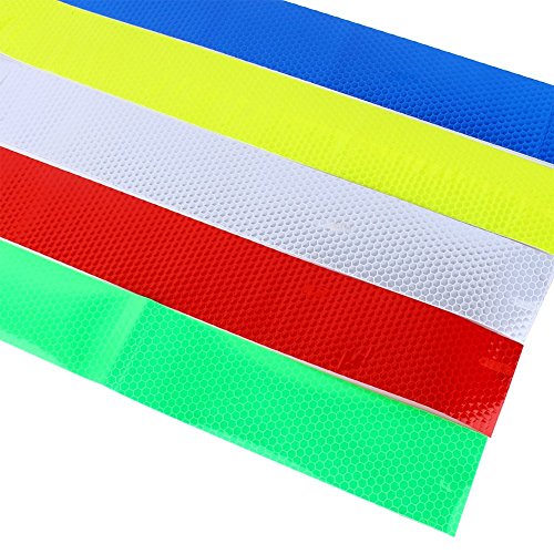 -. Feature : Warning tape for parking spaces and hazard areas / This kind of tape is reflective tape, when met lights irradiated it will be reflective in the dark night (NOT self-luminous) / Pack of 5, 5 colors for your choosing / DIY cars, buses, bicycles, motorcycles, trucks, mobile phones, household appliances, etc / Width: approx. 5cm Length: approx. 3m