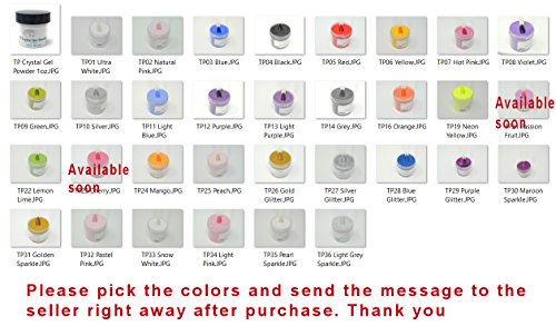 AFTER purchase PLEASE send a message to the seller with your color selections. If you do not select the colors after of purchase, we will ship default colors: TP02 Natural Pink, TP10 Silver, TP25 Peach, and Crystal Gel Powder Base.