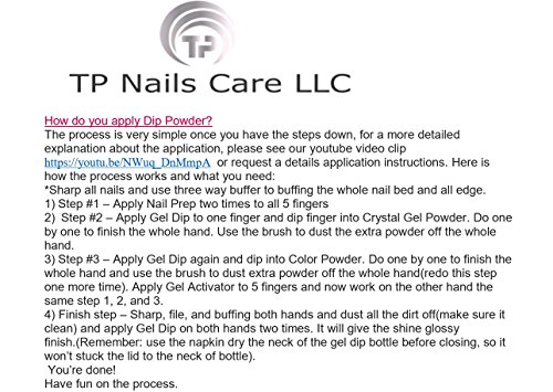 • 1 oz. advanced crystal gel powder for the dipping base (easy on real nails, unlike acrylic powder).