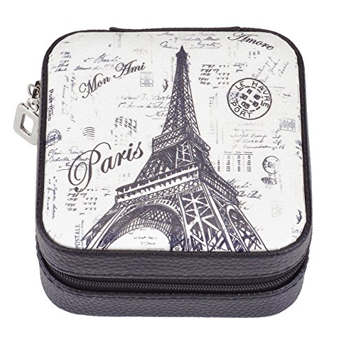 Yoption Paris tower Pattern PU Jewelry Holder Box Display Accessories Ring Earring Bracelet Storage Zipper Case PU Leather Portable Traval Jewelry Box Organizer (Black)