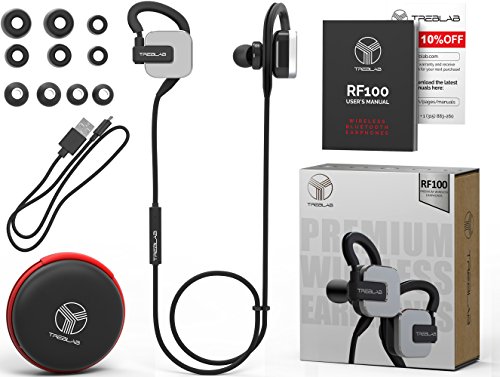 TREBLAB RF100 Bluetooth Headphones, Premium Wireless Earbuds For Sports, Running and Travel. True HD Sound, aptX Enhanced Connectivity, Noise Cancelling, Best Built-in Microphone