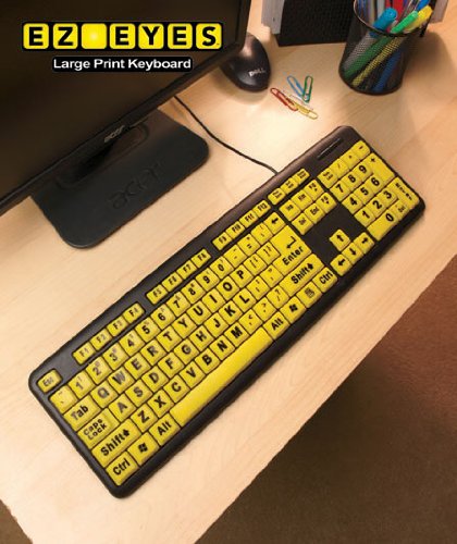As Seen On TV, EZ Eyes Large Print Keyboard, Makes Typing Easy, Improved Readability For Less Eye Strain & Better Accuracy, 4 Times Larger Letters & Higher Contrast Colors, Spill Resistant, PC & Mac Compatible.