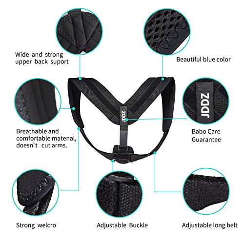 Studio : JDDZ Publisher : JDDZ Binding : Health and Beauty Product Description JDDZ Posture Corrector do a great job by helping you pull your shoulders to a more natural position Straighten your back in a scientific way. Multi-Function: Posture Correction - Effective Correct your bone and muscles, to keep aligned properly, keep away from hunchback, Misaligned Spine; Relieve Stress - Help relieve physical fatigue and stress, have a healthy body ; Reduce Pain - To reduce the pain from bad posture of shoulder, back and spine; Good Image - To own a good habit with sitting, standing or walking, give others a good image; Assisted treatment - Assisted medical support, help treatment Clavicle Fracture, Sprains, Sports injuries, Kyphoscoliosis etc. Feature ? Comfortable to wear under or over clothes. ? Perfect for those who spend long hours at the office. ? Lightweight and soft for all days, won't affect your daily life. ? Easy to put on by yourself, adjustable dual strap design. ? Universal adjustable size fits from 28" to 48" in chest circumference. ? Waterproof breathable material. ? Hypoallergenic: doesn't cause skin irritation. ? Invisible under clothes thanks to thin material. User instructions: 1. It should be fitting but not tight. 2. Don't wear the posture corrector for a long time at first days, suggest 15-20 minutes. 3.You may feel uncomfortable for the first 3-4 day, but later you'll get used to wearing the posture corrector therapy back brace. Package Included: 1pcs Posture Corrector THERE are somany options, WHY Choose US? All Our Products are Produced under Strict Quality Inspection (18 MONTHS WARRANTY GUARANTEE) and (Professional After-SALES TEAM) 0