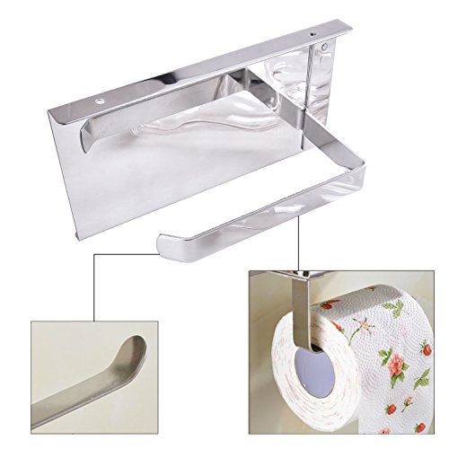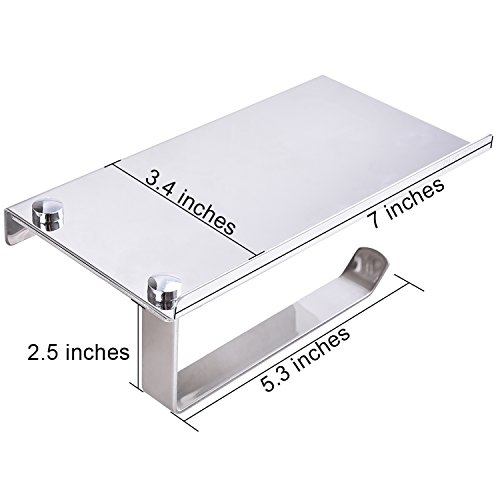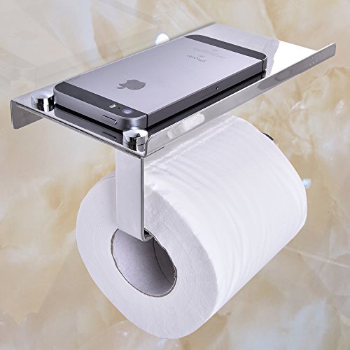 - Storage Shelf: Toilet paper holder with storage shelf, good enough to hold mobile phone, wipes, hand sanitizer, aroma diffusers, key, ashtray, cigarettes, watch, glasses and other little gadgets when you go to WC or have a shower.