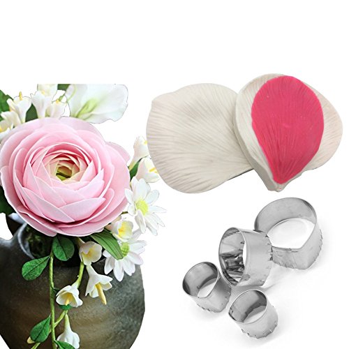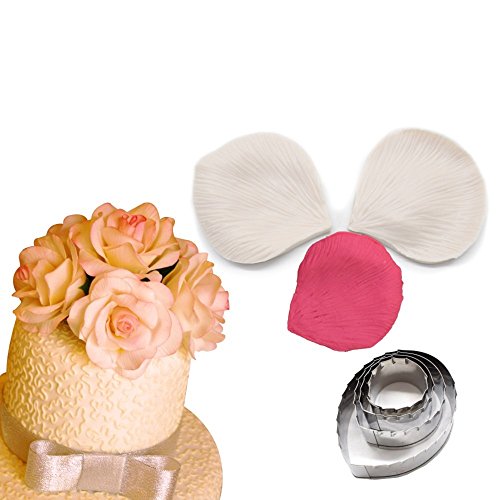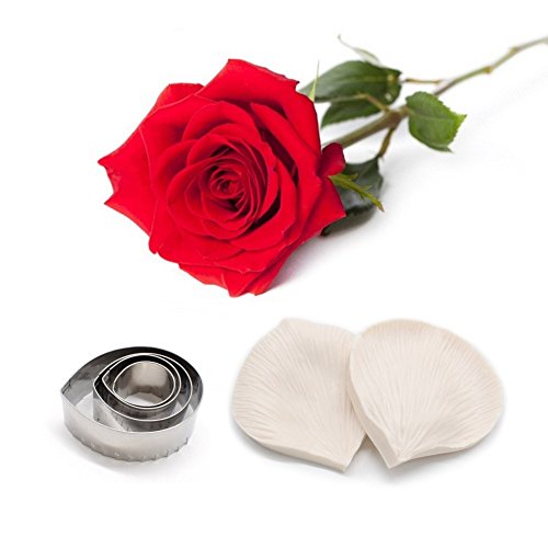 AK ART KITCHENWARE Rose Petal Decoration Tool Leaf and Flower Tool Kit Stainless Steel Cookie Cutter Set Silicone Veining Mold Petal Sugar Flower Making Tool A348&VM057