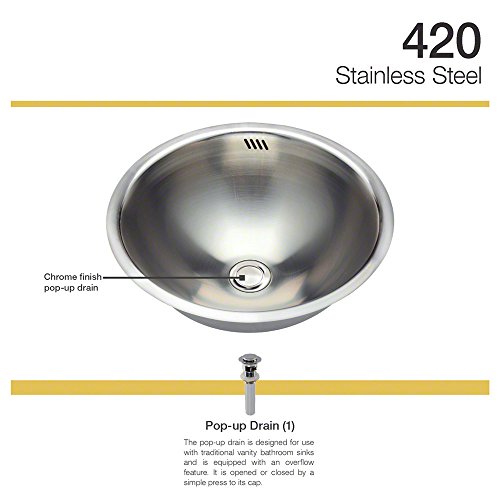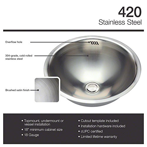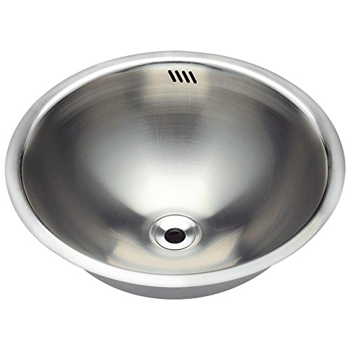 BATHROOM STYLING -- A shimmering, circular, stainless steel gem for the bath, with a beautiful scratch-masking and stain-resistant, brushed-satin finish