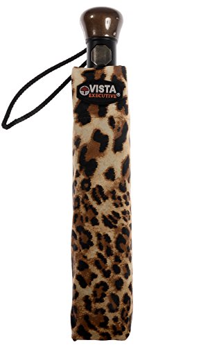 Product Description Show your wild side with this exclusive executive Vista umbrella featuring an animal print. This umbrella has an automatic folding mechanism that instantly opens your umbrella for quick and easy access in the rain. There is also a small wood handle and wrist strap for convenience. This printed umbrella will have you enjoying even the rainiest of days! 0
