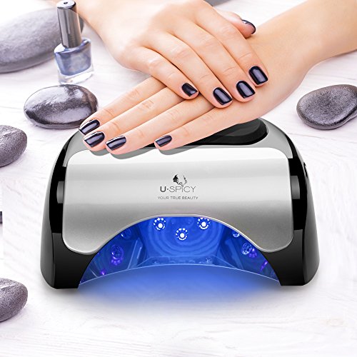 USpicy 48W LED UV Nail Dryer Nail Lamp for Gel Polishes with Automatic Sensor, Pull-down Cover, USB Light (Double press the 120s timer button to turn on the...