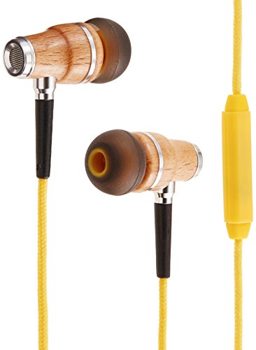 Symphonized NRG Premium Genuine Wood In-Ear Noise-Isolating Headphones with Microphone, Yellow