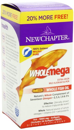 Wholemega Whole Fish Oil supplement delivers the natural profile of 17 omega fatty acids found in one of Nature’s true superfoods: Wild Alaskan Salmon. In fact, taking the daily serving of Wholemega for a week provides the same amount of whole omega fatty acids as three servings of Wild Alaskan Salmon. n addition to the benefits from its 17 whole omegas, New Chapter’s Wholemega has been clinically shown to retain healthy triglyceride levels* – a studied marker of heart health. Triglycerides are a form of stored fat found in the bloodstream and body tissues. Keeping these levels in a healthy range is important for helping support the health of the heart and blood vessels.*Feature