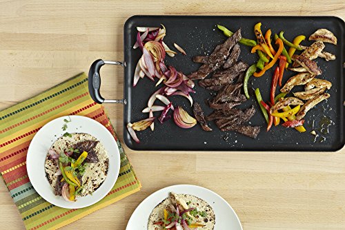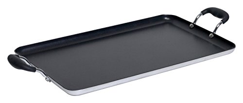 IMUSA Double Burner Griddle is made of sturdy aluminum. The aluminum griddle features a non-stick surface for easy cleaning and anti-corrosive handles to easily move it around the kitchen. non-stick griddle can be used to cook a variety of foods, including pancakes, eggs, meat and more. This IMUSA Double Burner Griddle is an helpful cooking tool in most any kitchen.Feature
