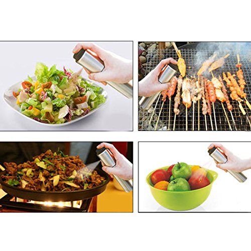 - * Multi-use: this olive oil sprayer is perfect for storing oil, olive oil, sunflower oil, vinegar. It produces a fine and uniform spray and makes the foods more delicious.