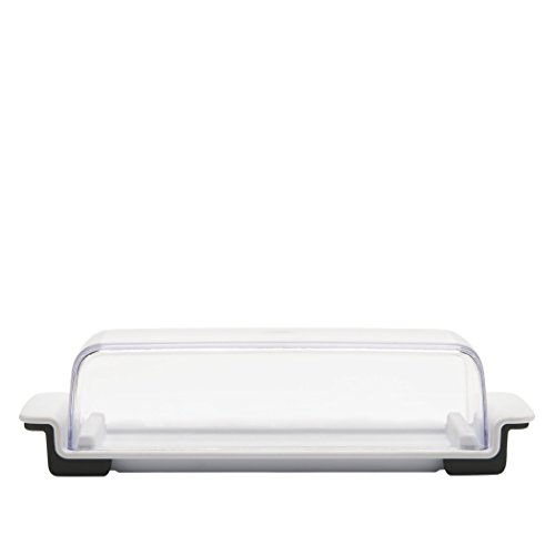 The OXO Butter Dish is smartly designed for convenience and ease-of-use with innovative "butter bumpers" that hold sticks of butter in place while cutting. The butter tray accommodates both long and short 8 tablespoon sticks and is marked with handy measurement guides for each. The clear plastic lid can't slide around and there is sufficient clearance so the butter won't smear the inside of the lid. The OXO Butter Dish is BPA-free, dishwasher safe and measures 7.9" l x 2.6" w x 2" h.