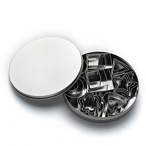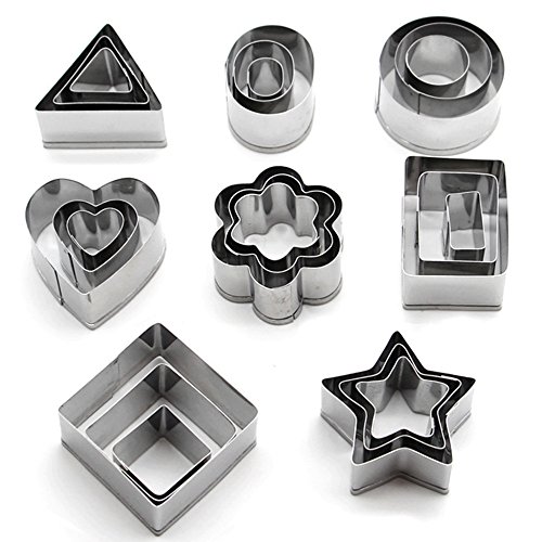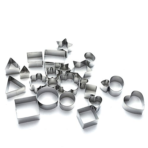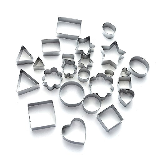 Cookie Cutters Set Stainless Steel ( Heart Flower Star Round Square Rectangle Triangle Oval Shapes ) Set of 5 by KAISHAN