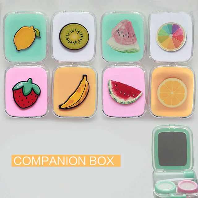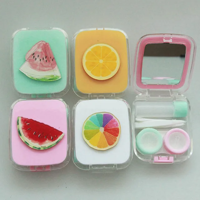 | [해외] 고품질 사랑스러운 여행 포켓 저장 콘택트 렌즈 케이스 홀더 컨테이너 과일 스타일 광장 렌즈 상자 거울 |
