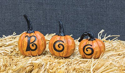 -. Brand : One Holiday Lane -. EAN : 0717959416195 -. Feature : Looking for a festive but subtle Halloween decoration? These miniature carved jack-o-lanterns are just it! / Set of three small, hand-painted pumpkins spells out "B-O-O" in ornate, whittled lettering. / Intricate detailing and care - one look at the perfectly twisted stems and you can tell these have been expertly whittled! Pumpkins have a nicely rustic look, painted in seasonal shades of orange and black. / Compact size means these will work just about anywhere, from the reserved office desk to the home mantlepiece. / Wood. Size: 4" tall x 2.5" wide each. -. Label : One Holiday Lane -. Manufacturer : One Holiday Lane -. ProductGroup : Lawn & Patio -. ProductTypeName : OUTDOOR_LIVING -. Publisher : One Holiday Lane -. Studio : One Holiday Lane -. Title : Set of 3 Orange and Black BOO Pumpkins Tabletop Halloween Decoration -. UPC : 717959416195