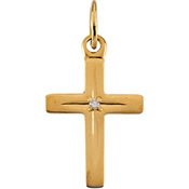 -. Title : 14K Yellow Gold 13.00X9.5Mm Children's Cross W/Diamond Pendant