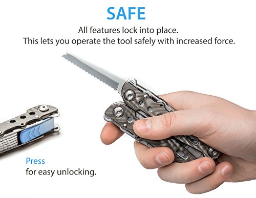 ✅ SAFE AND EASY TO USE – All of the extra tools locks into place when fully deployed and must be manually unlocked to fold away. This provides a much safer user experience. Also, all of the tools are accessible while the multitool is in its folded or closed position, mimicking the functionality of a pocket knife.