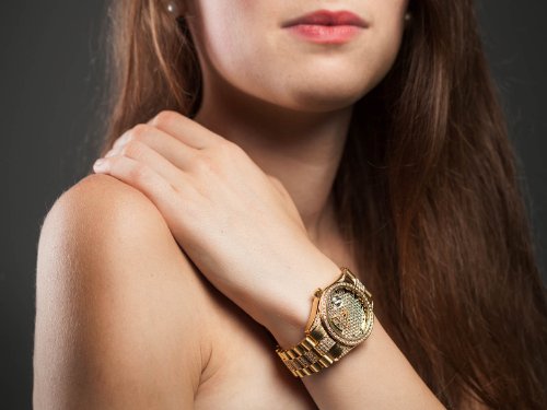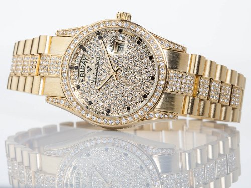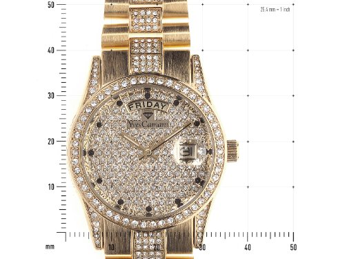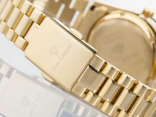 Yves Camani Tiberius Ladies Watch Gold Plated Cubic Zirkonia Crystals Date YC1043-E