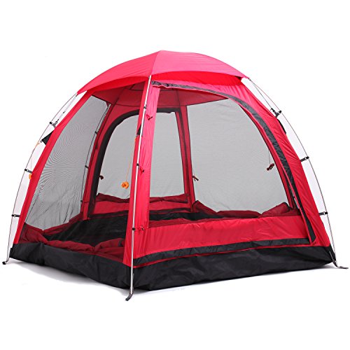 MESH PANEL DOUBLE LAYER DESIGN - Double layer design for each side, the outer layer is a mesh panel for ventilation and the inner layer is made of waterproof polyester which can be zipped up and down. Can be used as a camping tent and a screen room.