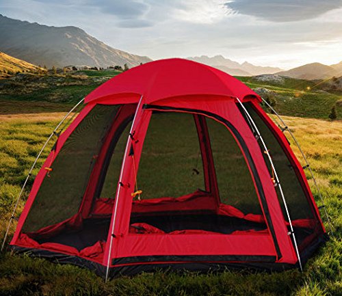 VINQLIQ® HEXAGONAL DOME FAMILY CAMPING TENT SCREEN ROOM FOR 5 PERSONS MESH PANELS DOUBLE-LAYER WATERPROOF WINDPROOF FOR OUTDOOR CAMPING, TRAVEL, HIKING, HUNTING, VACATION, FISHING