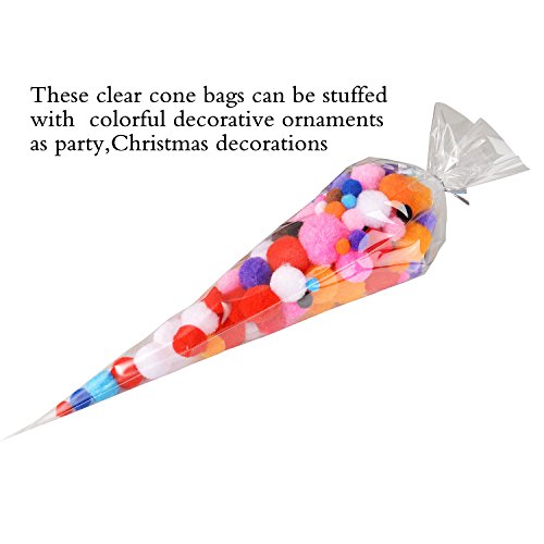 - Medium sized cello bags: the clear cone bag is 11.8 inches/ 30 cm in length, 6.3 inches/ 16 cm in width; Twist tie is 3.9 inches/ 10 cm in length