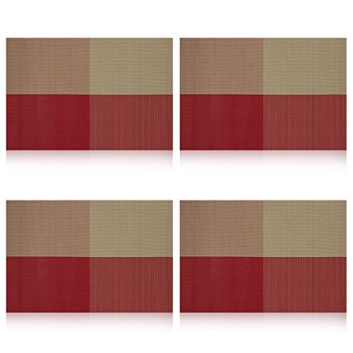 -. Title : Placemat,U'artlines Grid Green Crossweave Woven Vinyl Non-slip Insulation Placemat Washable Table Mats Set of 4