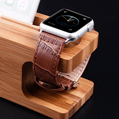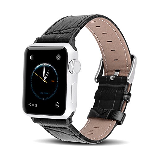 Apple Watch Bands 42mm, Fullmosa Jan Series Bamboo Texture Calf Leather Replacement Band/Strap with Stainless Steel Clasp for Apple iWatch Series 1 & 2 Sport and Edition Versions 2015 2016,Black