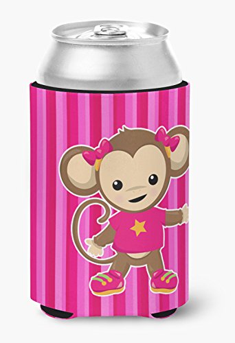 Caroline's Treasures Monkey On Pink Stripes Can or Bottle Hugger, Can Hugger, Multicolor
