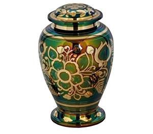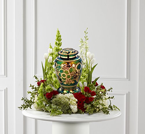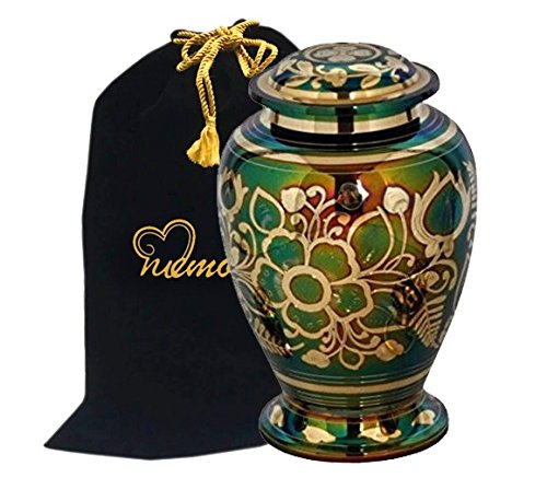 Emerald Green Cremation Urn - Green Urn with Gold Accents - Adult Funeral Urn Handcrafted and Engraved - Affordable Urn for Ashes - Large Urn Deal.