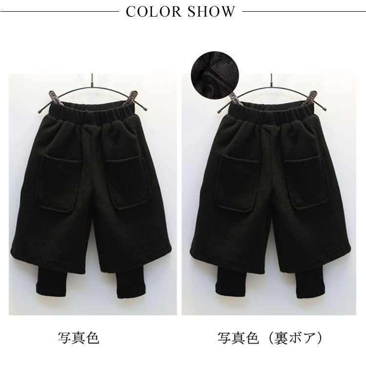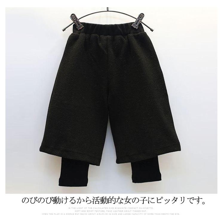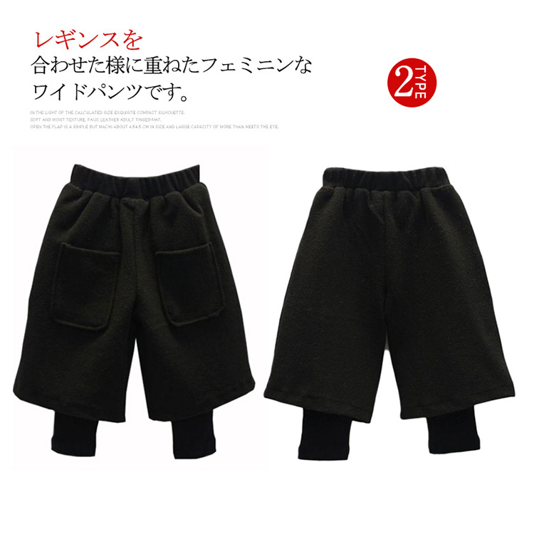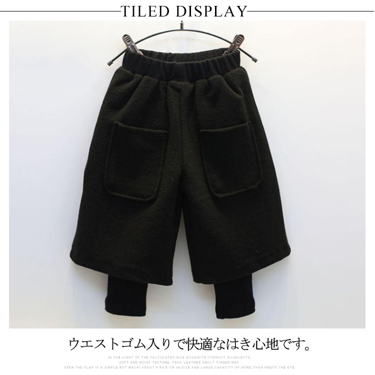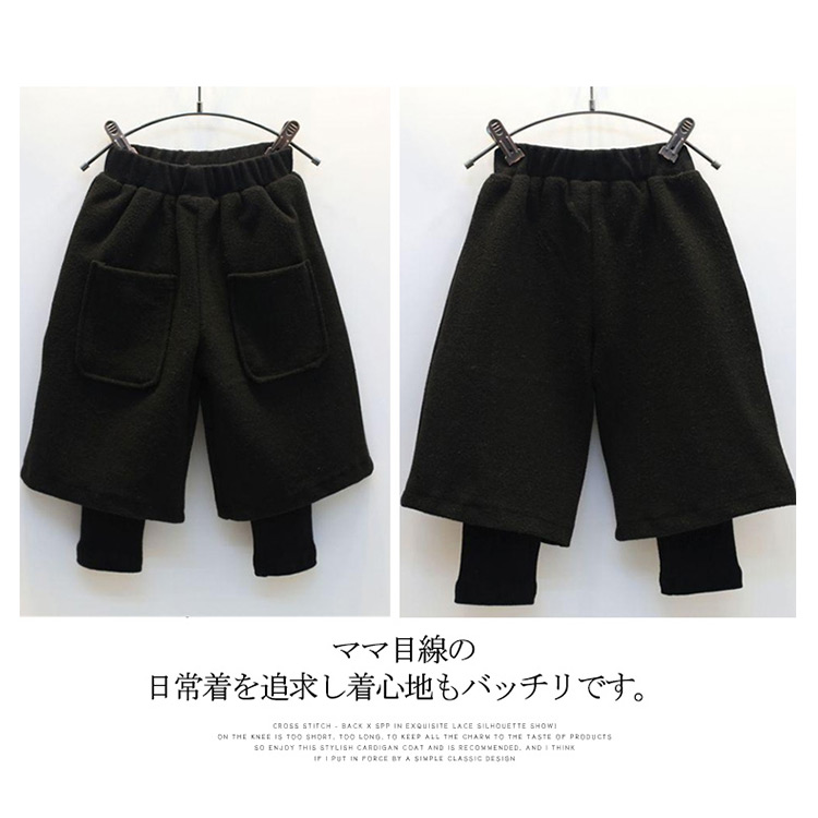 | レギンスを合わせた様に重ねたフェミニンなワイドパンツです。ウエストゴム入りで快適なはき心地です。のびのび動けるから活動的な女の子にピッタリです。ママ目線の日常着を追求し着心地もバッチリです。 | |