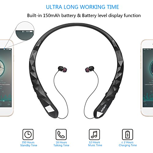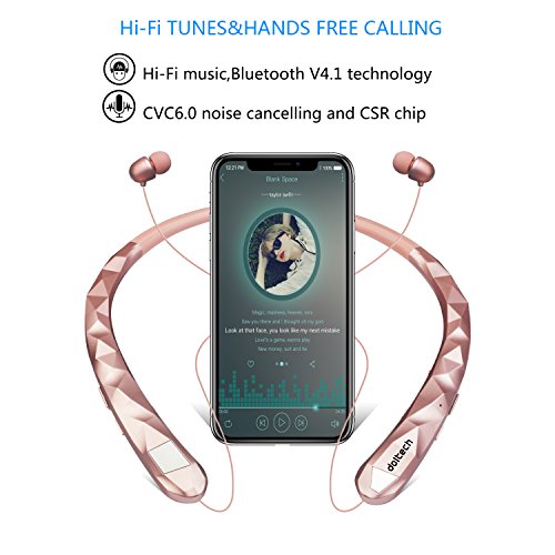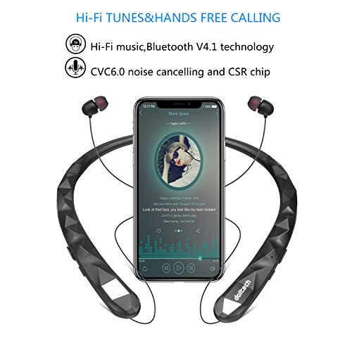 -. Title : Bluetooth Headphones DolTech Wireless Headphones with Retractable Earbuds Neckband Headset with Mic Sport Sweatproof Stereo Earphones (16 Hours Work Time, Noise Cancelling, Bluetooth 4.1)