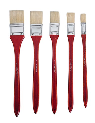 MEEDEN 5-Piece Large Area Brushes Hog Bristle Bright Paint Brushes for Acrylic, Oil, Plein Air Painting and Wall Painting, Long Handle