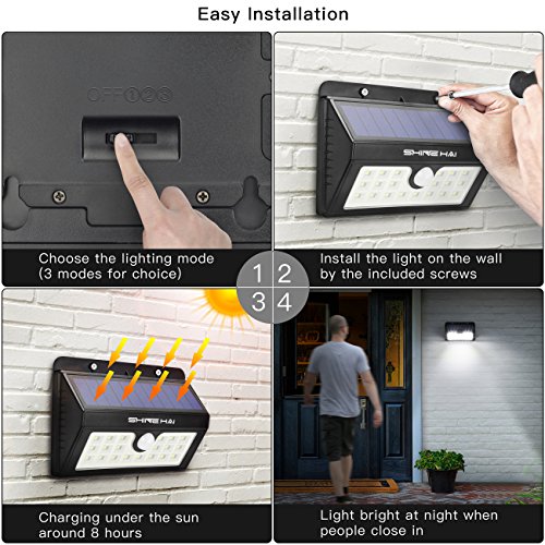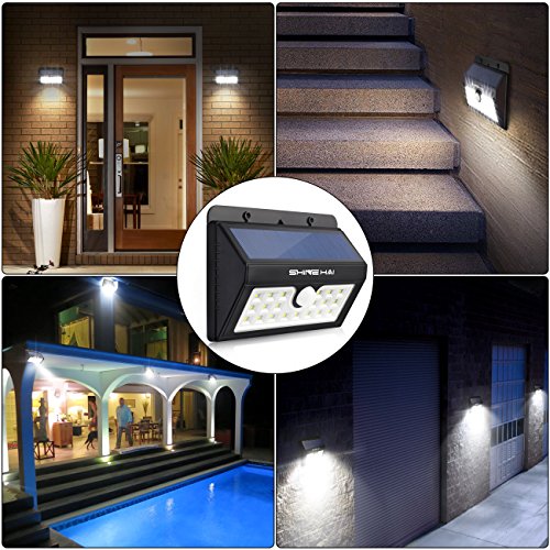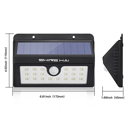 - Ultra Bright Solar Powered Lights: Different from the 16-30 LEDs solar outdoor light, we designed the solar light with 20 powerful LEDs, brighter than 16 LEDs, works longer than 30 LEDs. 120 degrees light angle, 19-26FT detect distance provide excellent illumination and turn the night into the day.
