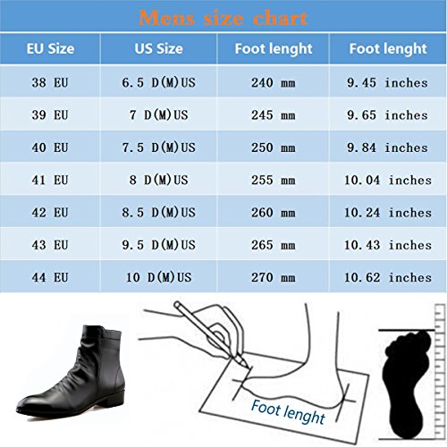 This pair of shoes is ideal for office work, business activities, formal dance, party, leisure, daily and outdoor activities. Ultra-fiber leather vamp, stylish zipper closure design, round toe design, comfortable insoles, comfortable anti-skid outsole. Will make you love this pair of shoes! 6.5 US size = 38 EU size = Foot length 240 mm = Foot length 9.45 inches 7 US size = 39 EU size = Foot length 245 mm = Foot length 9.65 inches 7.5 US size = 40 EU size = Foot length 250 mm = Foot length 9.84 inches 8 US size = 41 EU size = Foot length 255 mm = Foot length 10.04 inches 8.5 US size = 42 EU size = Foot length 260 mm = Foot length 10.24 inches 9.5 US size = 43 EU size = Foot length 265 mm = Foot length 10.43 inches 10 US Size = 44 EU size = Foot length 270 mm = Foot length 10.62 inches 0 |