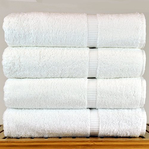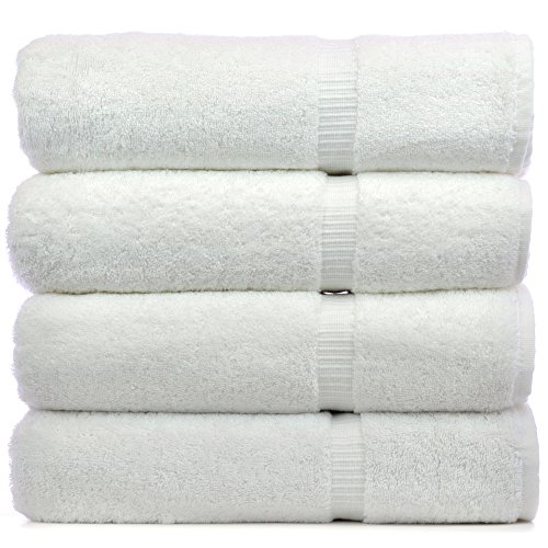 Bare Cotton Luxury Hotel & Spa Towel Turkish Bath Towels Dobby Border, White, Set of 4
