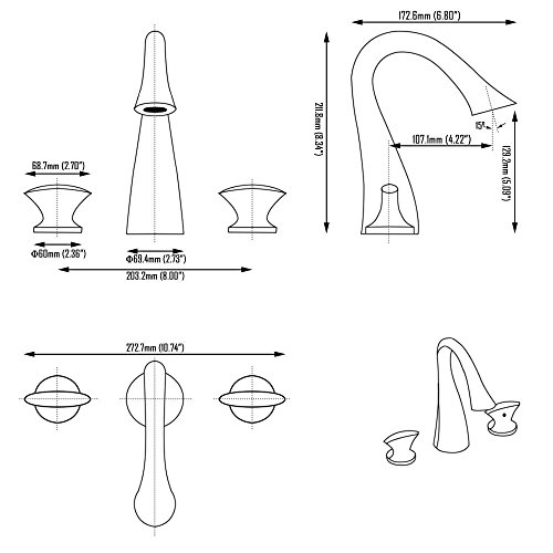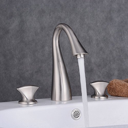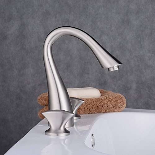 -. Title : Ollypulse Solid Brass Three Holes Double Knobs High Arc Widespread Bathroom Sink Faucet