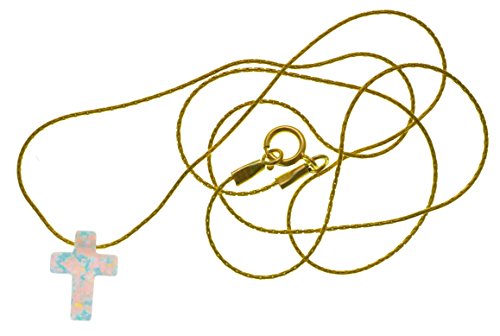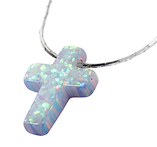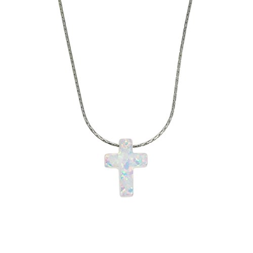 -. Title : Synthetic White Opal Cross Necklace Christian Charm Pendant with 18.9" Snake Chain - NanoStyle Jewelry
