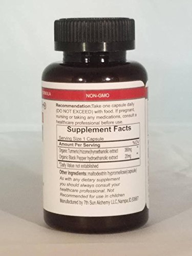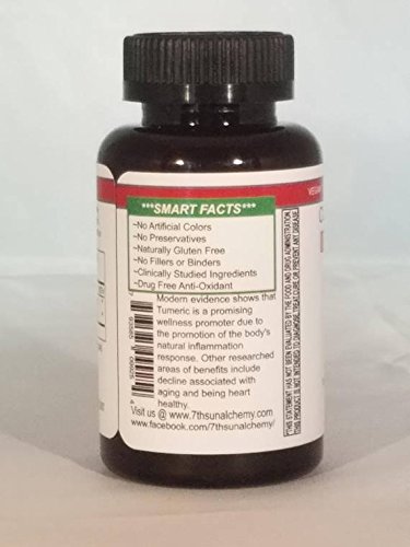 Studio : 7th Sun Alchemy Publisher : 7th Sun Alchemy Binding : Health and Beauty Product Description At 7th Sun Alchemy we utilize the whole herb (spice) extraction method. Turmeric Complete (curcuma Longa) is a culinary spice that spans cultures, it is a major ingredient in Indian curries, and even makes American mustard yellow. Modern evidence shows that this brightly colored relative of ginger has become a promising wellness promoter. Most likely due largely to it's anti-inflammatory action. Our "Curcumin Plus " is a potent anti-inflammatory , and seems to work more effectively than other dietary supplements. We add 5% black pepper extract to our 95% Curcumin, to achieve the greatest absorption by the human body. It exerts potent anti-inflammatory effects. Independent of its anti-inflammatory effects it is a heavily researched molecule. Other areas of health benefits include alleviating cognitive decline associated with aging, being heart healthy by both electrical means and reducing lipid and plaque levels in arteries, and promoting insulin production. In Vitro tests suggest curcumin plus has quite a large safety threshold. (few side effects if any) Do not exceed recommended dose for best results. 0