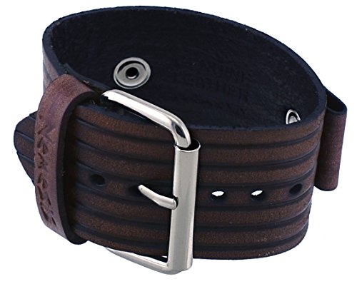 -. Title : Nemesis #VEB-B Groove Pattern Wide Brown Leather Cuff Wrist Watch Band