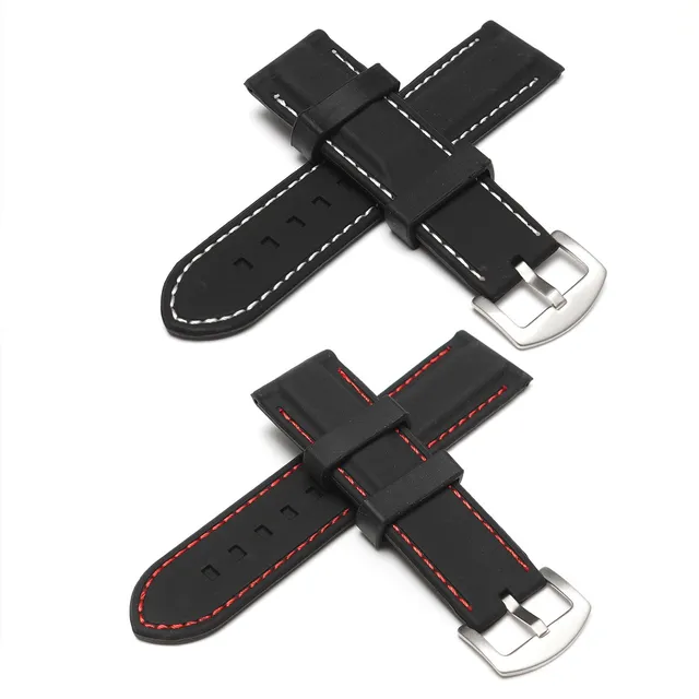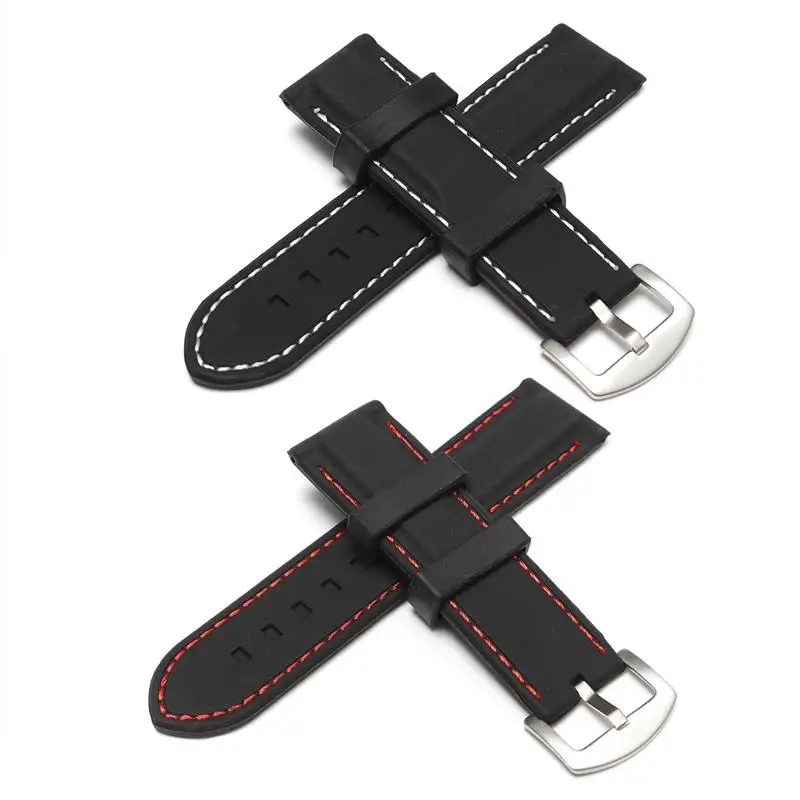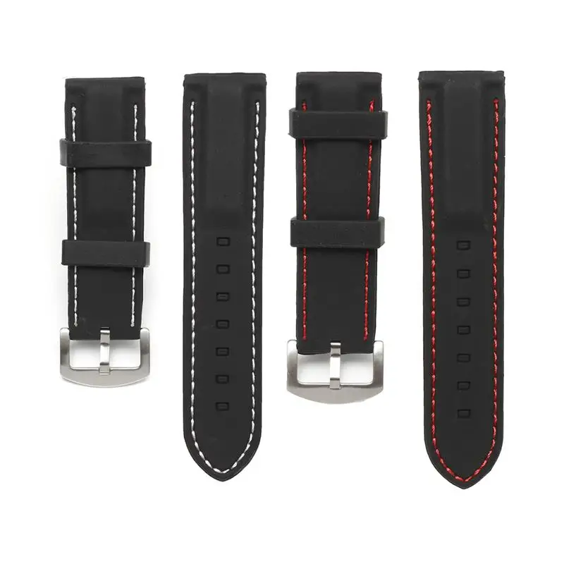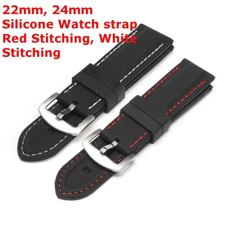 | [해외]22 미리메터 24 미리메터 실리콘 손목 스테인레스 스틸 배 버클 화이트 레드 스티치 방수 다이빙 손목 스트랩 액세서리 |