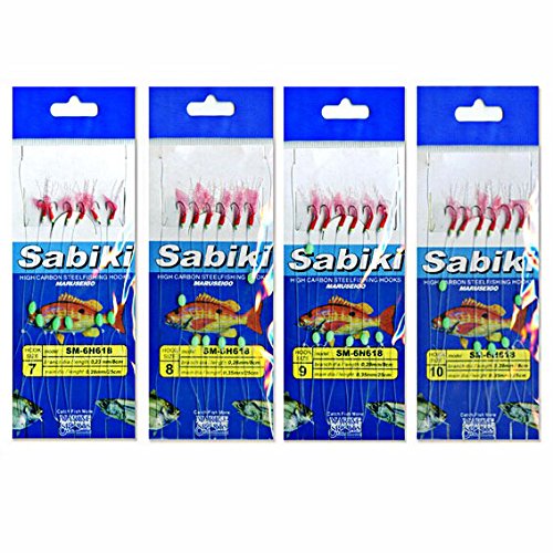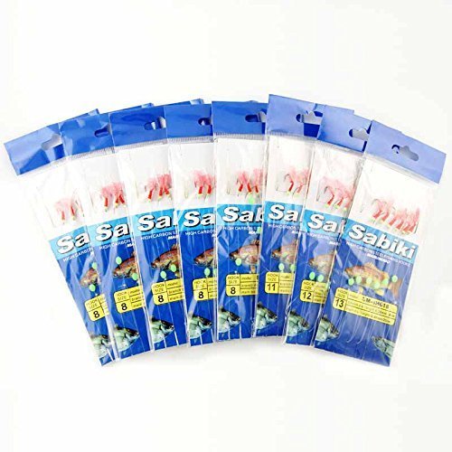 -. Feature : 1. Package included:10packs luminous high quality sabiki rigs, 6pcs per pack / 2. Random size: 8#,9#,10#,11#,12#,13#,14#,15#,16# / 3. Combo: Glow beads + rubber + bright silk + fishing line + ball bearing swivel interlock snap connectors / 4. It luminous brightly in the dark to attract big fishes / 5. Attention:if we do not have the same color or design as show in the photo we will send the similar ones
