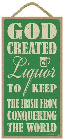 (SJT94243) God created liquor to keep the Irish from conquering the world 5" x 10" wood sign plaque