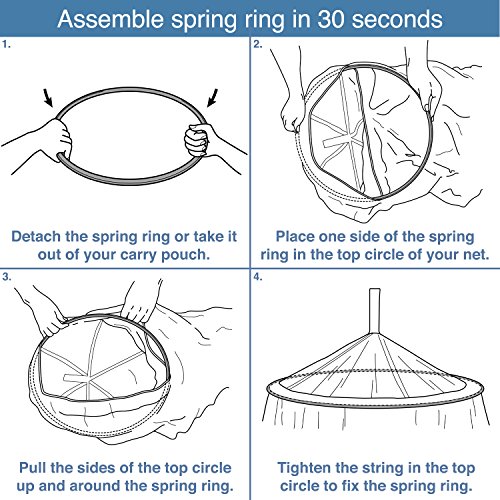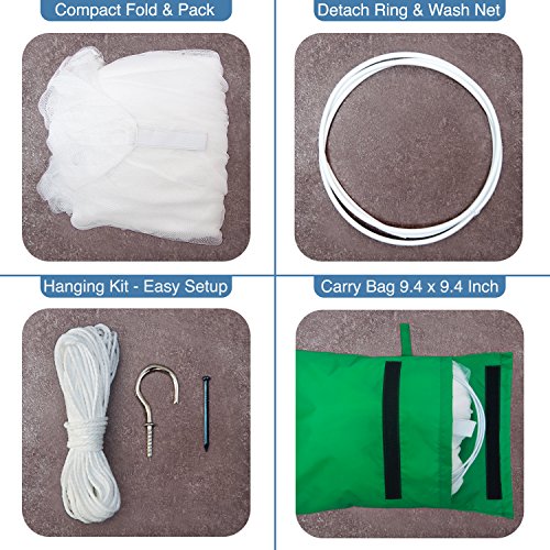 4. FOR HOME & TRAVEL! Easy setup with only one attachment point and the included hanging kit. Our enclosed canopy creates a cool and airy space over the bed. With a unique pop-up spring ring that can be detached to prevent any material damage while washing your net.
