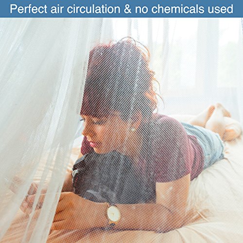 2. LIGHTEST NET & CARRY BAG! A decorative canopy for your bedroom and a must for overseas adventures. Our net fits any bed size: circumference 35 ft. and height 7.6 ft. The fine-mesh netting, 156 holes per square inch, offers the perfect compromise between maximum mosquito protection and the best possible air circulation.