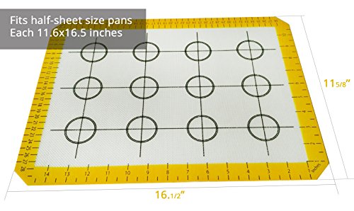 Perfect Size: Fits US standard half size baking sheets (16.5" x 11 5/8") - Mat thickness is 0.75 mm (approx. 1/32"). Perfect for baking, kneading, rolling, candy/macaron/pastry/cookie/bun/bread making as well as for freezing meat balls, dumplings, fruits and vegetables.