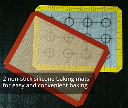 Ollis Premium Silicone Baking Mat Set 2 Half Sheets - Non Stick Cookie Sheets, (16.5" x 11 5/8") Red Yellow